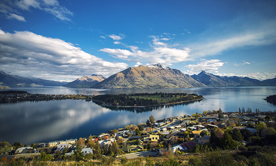 皇后鎮(zhèn)是一個(gè)被南阿爾卑斯山包圍的美麗小鎮(zhèn),也是一個(gè)依山傍水的美麗城市?;屎箧?zhèn)全處都是完美的觀光地點(diǎn),夏季藍(lán)天艷陽,秋季為鮮紅與金黃的葉子染成繽紛多彩的面貌,冬天的氣候清爽晴朗,還有大片覆著白雪的山嶺,而春天又是百花盛開的日子。四季分明,各有著截然不同的面貌。