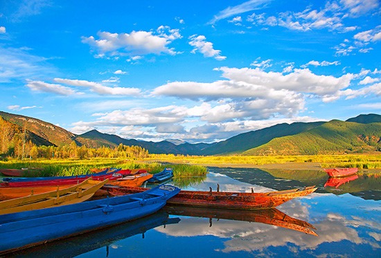 早餐后前往游覽【瀘沽湖草海】,草海在瀘沽湖的東南面,由于長年的泥沙淤積,湖水較淺,因此生長有茂密的蘆葦。草海的三分之一處,在那蘆葦叢中延伸出來的一座“鵲橋”,微風(fēng)一吹,揚(yáng)起紛飛的花絮,真有點像七仙女撒下的雪白的花瓣。下馬后走近一看,這座長達(dá)300米的木橋。穿過蘆叢,直達(dá)對岸,它不僅是兩岸村民的交通要道,而且,昔日還是左所土司喇寶成的漢族夫人去后宮的一條捷徑—【摩梭走婚橋】,走婚橋是摩梭男女約會的地方, 瀘沽湖畔的摩梭人奉行“男不娶,女不嫁”的“走婚”習(xí)俗。后乘坐瀘沽湖特有的【豬槽船】登里務(wù)比島,泛舟在瀘沽湖上,仿佛時光靜止,清涼的湖水在指尖輕輕劃過,尋找瀘沽湖上最美麗的島嶼。這里有深藍(lán)的天空和純凈的湖水,時間在這里是靜止的。乘坐豬槽船泛舟湖上,看湖天一線,一切猶如山水畫。之后乘車返回麗江,入住麗江酒店。