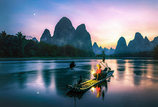 游覽桂林城徽最佳觀景地【訾洲·象山】(游覽時間約1h),柳宗元游覽訾洲后曾寫下《訾家洲亭記》頌揚桂林山水。若恰好是在煙雨彌漫的時節(jié)游覽,云紗霧幔將訾洲籠罩在一片朦朧之中,猶如一幅水墨畫卷,充滿詩情畫意,這就是譽滿八桂的“訾洲煙雨”美景。