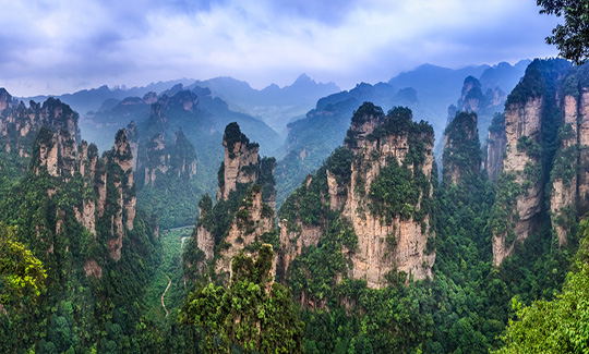 早餐后汽車往張家界(車約1.5小時),游覽張家界第一個國家森林公園【武陵源核心景區(qū)】,參觀【袁家界景區(qū)】(贈送百龍?zhí)焯萃担鶕?jù)景區(qū)人流量可能安排百龍?zhí)焯輪纬?天子山索道單程,無優(yōu)無退):探尋《阿凡達(dá)》電影中的群山漂浮、星羅棋布的玄幻莫測世界--“哈利路亞山”即“南天一柱”(又名乾坤柱),參觀云霧飄繞、峰巒疊嶂,繼往氣勢磅礴的迷魂臺、天下第一橋等空中絕景;遠(yuǎn)眺張家界北緯30°地理新發(fā)現(xiàn)楊家界:看峰墻之絕,峰叢之秀,峰林之奇等。后贈送乘坐百龍?zhí)焯菹律?,漫步世界最美的【金鞭溪風(fēng)景區(qū)精華段】:杉林幽靜,穿行在峰巒幽谷云間,溪水明凈,人沿清溪行,勝似畫中游,這是一條觀賞性與自娛性結(jié)合的旅游線路,十里長溪,山回路轉(zhuǎn),一步一景,十步一重天,小溪潺潺的流經(jīng)你的腳下,似琵琶,似古箏,時而丁冬悅耳,時而涓涓小吟; 稍后乘環(huán)保車出景區(qū);下午游覽享有“世界溶洞全能冠軍”之稱的國家AAAAA【黃龍洞】(參觀約2小時,贈送VIP通道,直達(dá)洞口),探秘洞中,燈火闌珊、石筍林立,猶如一株株古木錯節(jié)盤根、洞中有洞、洞中有河、無奇不有,真乃名副其實的“地下魔宮”,洞中還有投保一億元的石筍《定海神針》、《響水河》等著名景點(diǎn)。后安排入住酒店,
