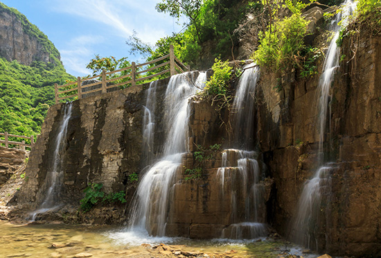 早餐后赴全球首批“世界地質(zhì)公園”【云臺山】(門票已含,景區(qū)交通60已含),游覽潭瀑峽(約2小時):觀由情人瀑、龍鳳壁、唐王試劍石等景觀構(gòu)成的“三步一泉,五步一瀑,十步一潭”美妙絕倫的山水畫卷 ;還可參觀地質(zhì)博物館;觀水上太極拳表演;后游覽泉瀑峽(游覽時間2小時):觀幽潭、長生泉、多孔泉、云臺天瀑(季節(jié)性)等景點或游覽獼猴谷,觀太行獼猴。