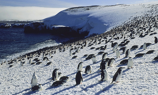 半月灣坐落于南瑟特蘭群島之間,中部的小山丘主要成分是巖漿巖。面積不大的半月 灣是帽帶企鵝的家園 ,這種面目“嚴(yán)肅”的企鵝因其下巴上的黑色帶狀花紋而得名, 這里是您拍攝帽帶企鵝的絕佳地點;還有機(jī)會看見威德爾海豹和長著小耳朵的皮毛海 豹;