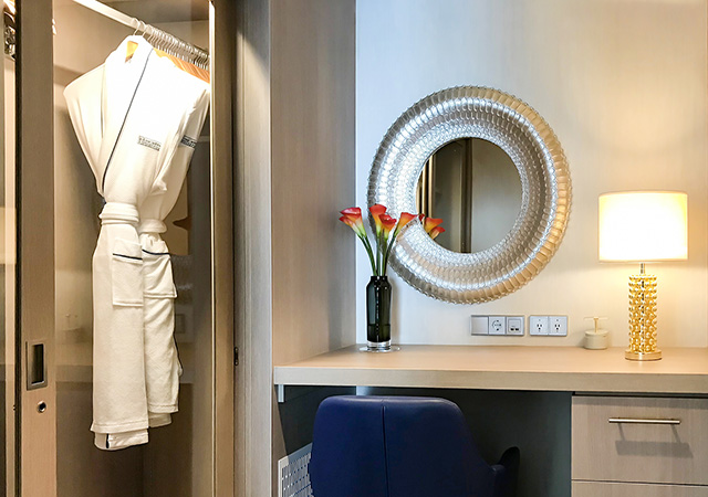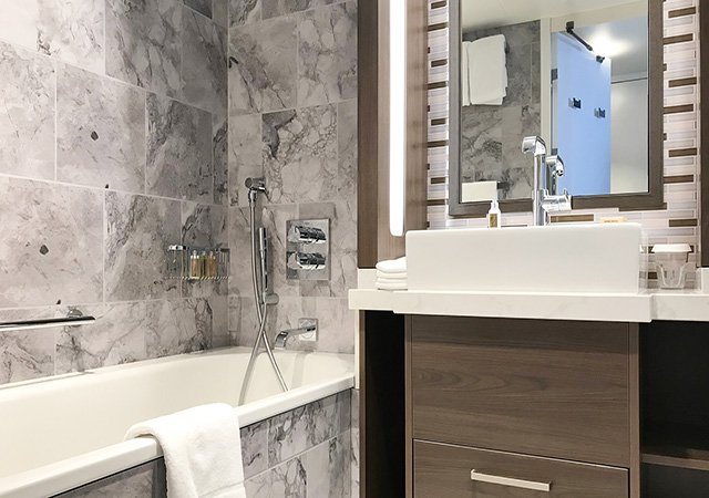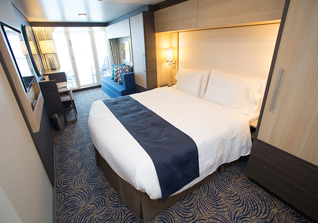 套房專(zhuān)屬空間:皇家客房以寬敞、布局合理而著稱(chēng)。在保留這些特點(diǎn)的基礎(chǔ)上,光譜號(hào)在13層到16層設(shè)立皇家海上府?。≧oyal Vila at Sea),為套房客人提供專(zhuān)屬的客房、餐飲、休閑區(qū)域?;始铱偛肕ichael Bayley表示,海洋光譜號(hào),將成為皇家加勒比游輪20多艘船隊(duì)之中,第一艘設(shè)計(jì)有套房專(zhuān)屬空間suite zone的船。金卡套房(Royal Gold)及銀卡套房(Royal Silver)客人將各自擁有其專(zhuān)屬的樓層、電梯、餐廳和酒廊,金卡客人可獨(dú)享位于16層的海上觀景臺(tái)-金榭麗臺(tái)(The Balcony),以及專(zhuān)屬精品購(gòu)物店(The Boutique)。
