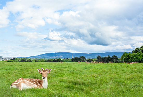 鳳凰公園坐落在都柏林市中心西北部利費(fèi)伊河北岸,占地1760英畝,是愛(ài)爾蘭最有名的公園。公園原為當(dāng)時(shí)的總督奧蒙德公爵于1663年所建的鹿園,意在迎合奉承當(dāng)時(shí)復(fù)位的君王查爾斯二世及當(dāng)時(shí)都柏林的一些顯貴。歷經(jīng)幾個(gè)世紀(jì)的變遷,仍保持著17世紀(jì)鹿園的特點(diǎn)。Phoenix音同凱爾特語(yǔ)Finniskk,為水清草綠之意,英國(guó)人就將其稱為鳳凰公園,并一直流傳至今。雖然公園一度成為王者們奢華的享樂(lè)場(chǎng)所,如今又歸于公眾所有,自然的環(huán)境和成群的馴鹿給數(shù)以萬(wàn)計(jì)的游客們帶來(lái)了快樂(lè)。