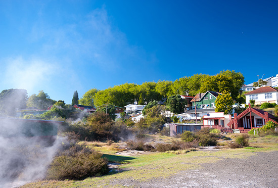 奧希奈姆圖毛利文化村是一個(gè)迷人的湖畔小村,在這里不僅能參觀新西蘭土著毛利人的古老房屋,還能在村里的展覽所觀賞毛利人獨(dú)特的雕刻品,了解毛利族的文化。許多毛利族的后代子孫都在這村子里居住,村里每晚都載歌載舞,舉辦傳統(tǒng)歌舞表演,熱鬧非凡。 歐洲文化和毛利文化在這里被很好地融和起來。古老的圣諾英國國教教堂內(nèi),略顯雜亂地裝飾著毛利雕刻、涂漆的漩渦形花紋以及鑲嵌著彩色玻璃的窗戶,其中一扇描繪了耶穌身披毛利族斗篷行走在羅托魯瓦湖面上的情景。教堂對(duì)面是建于1905年的神圣的TAMA-TE-KAPUA族會(huì)堂。 土生土長的毛利人,擅長用地?zé)釤笫澄?,你一定要常常這里地道的石頭火鍋:把經(jīng)地?zé)岷鏍C的薄薄石塊放入地洞,以石塊將食物燴熟,風(fēng)味極其獨(dú)特!如果運(yùn)氣夠好,去的時(shí)候還能觀賞到村內(nèi)的地?zé)釃娙獓姲l(fā)的奇妙景象呢!