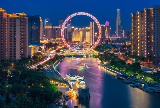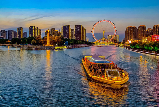 天津之眼摩天輪坐落于當(dāng)年朱棣率千軍萬馬渡河之處——永樂橋之上,是世界上唯一一座跨河建設(shè)、橋輪合一的摩天輪,兼具觀光和交通功用。上仰天子之渡靈氣,下?lián)砭藕酉律绎L(fēng)光,其奇思妙想、巧奪天工的設(shè)計(jì)是世界摩天輪建設(shè)方面的一大突破。
