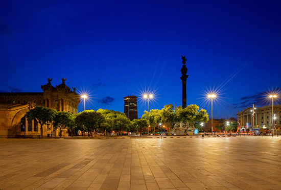 廣場上重要的建筑是由著名雕塑家梅利達(dá)雕刻的哥倫布紀(jì)念碑,兩座巨大的船形噴水池將其包圍其中。紀(jì)念碑對面開設(shè)有一座哥倫布蠟人博物館,下方的臺階是馬德里娛樂文化中心的入口。廣場中間的哥倫布紀(jì)念碑,建于1885年,為哥特式風(fēng)格。紀(jì)念碑的上端矗立著一座哥倫布白色雕像,左手指向美洲大陸方向,右手握著當(dāng)時捐助他航海的卡斯蒂利亞王國的旗幟。紀(jì)念碑下端是一個正方形底座,四面都刻有精美的浮雕,展示四段與哥倫布發(fā)現(xiàn)新大陸相關(guān)的精彩故事。