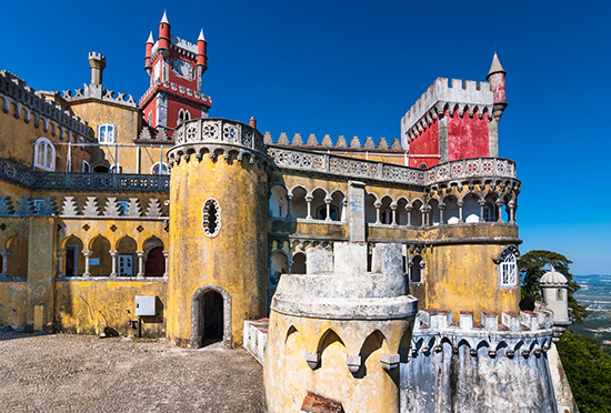 佩納宮是國王離宮,它耀眼、奇特、矯飾的身姿看上去像一座樂園式的城堡。宮殿本身為多種建筑風格的大雜燴,兼具哥德式、文藝復興式、摩爾式、曼努埃爾式(Manueline,葡王努埃爾一世在位時的建筑風格)乃十九世紀葡萄牙女王瑪麗雅二世的丈夫——費迪南德(Ferdinand of saxe-Coburg-Gotha)之心血結(jié)晶。這里不僅是葡萄牙國家古跡,也是葡萄牙七大奇跡之一,位于里斯本附近的辛特拉市圣伯多祿堂區(qū)(São Pedro de Penaferrim)一個山丘的山頂,晴朗天氣下在里斯本市區(qū)便清晰可見。1995年,作為辛特拉文化景觀的一部分入選為世界遺產(chǎn)?,F(xiàn)在頻繁的被用于葡萄牙總統(tǒng)和其他政府官員國務活動。而在中世紀時期,這里僅是一個圣母小堂。1493年,若昂二世夫婦來此朝圣,繼任者曼努埃爾一世修建了修道院,1755年在里斯本大地震中修道院被夷為平地,1842-1854年,花大力氣興建了王室的夏宮,建筑師為德國人馮埃施韋格南爵(Baron von Eschwege),最終完工于1885年。