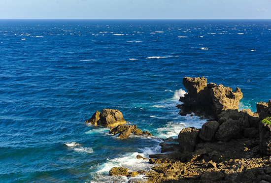 貓鼻頭公園位于恒春半島東南岬,貓鼻頭名稱的由來(lái),是因?yàn)閹r岸旁一塊外形像蹲坐貓的突出珊瑚礁巖,這里長(zhǎng)時(shí)間受波浪侵蝕、反復(fù)干濕、鹽粒結(jié)晶、砂粒鉆蝕等作用,因而產(chǎn)生崩崖、壺穴、礁柱、層間洞穴等奇特景觀,這里也是欣賞臺(tái)灣海峽海岸線的理想位置。