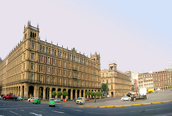 憲法廣場(chǎng)位于墨西哥城的中心,南北寬220米,東西長(zhǎng)240米,是世界上宏偉的廣場(chǎng)之一。憲法廣場(chǎng)之于墨西哥城就如同埃菲爾鐵塔于巴黎,斗獸場(chǎng)之于羅馬,是去墨西哥城必到的地方,也是墨西哥城的心臟地帶,是西班牙殖民者摧毀了阿茲特克帝國(guó)的都城特諾奇蒂特蘭后重建的。這里一直非常熱鬧,不論是在16世紀(jì)(在廢墟上建起的),還是在18世紀(jì)(攤販云集的市場(chǎng)),即使是在已經(jīng)成為政府機(jī)關(guān)所在地的今天,熱鬧從未停止,游客和當(dāng)?shù)厝硕寄茉谶@里找到他們需要的快樂(lè)。每天早上8點(diǎn)和下午6點(diǎn),會(huì)有墨西哥士兵從國(guó)家宮里走出,進(jìn)行升降旗儀。