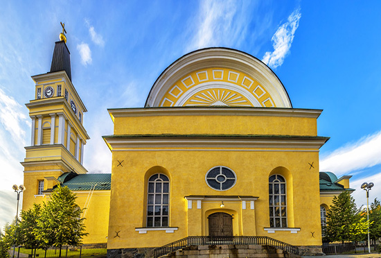 奧盧大教堂建于1777年,由著名設計師Carl Ludwig Engel設計,是一個福音派路德教堂,位于奧盧市中心。1822年奧盧市遭受了火災,教堂的木結構被焚毀。不久,教堂以舊石墻為基礎,并建了新的中央圓頂及一座新塔樓,對大教堂進行了修繕。大教堂于1832年完工,塔樓于1845年完工。大教堂及其地窖可供教區(qū)居民在基督徒家庭慶典活動中使用。
