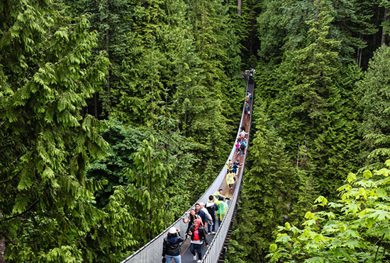 卡皮拉諾吊橋(Capilano Suspension Bridge)建于1889年,長450英尺(137米),在卡皮拉諾河上方230英尺(70米)。