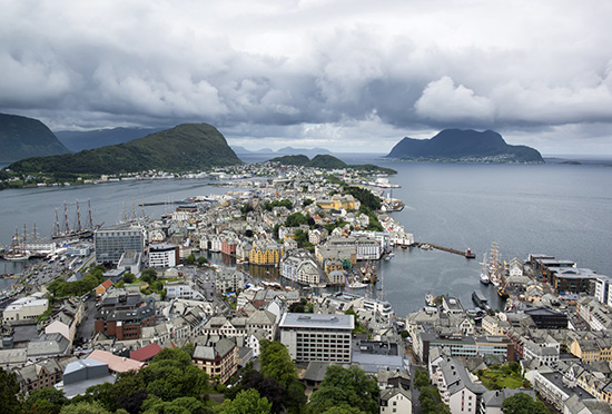 通過248階階梯的攀登,即可登山奧勒松阿克拉斯山山頂,俯瞰這個(gè)峽灣之中三個(gè)小島串聯(lián)起來的美麗城市。