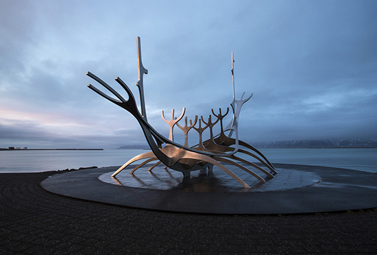 完成于1990的太陽航海者,是一個海盜船骨架雕塑,由冰島知名雕塑家阿爾納森創(chuàng)作的。被放置在位于雷克雅未克北邊的海岸旁,是這座“無煙城市”的重要標(biāo)志。面朝大海的雕像同樣代表了維京航海者們不羈的精神。