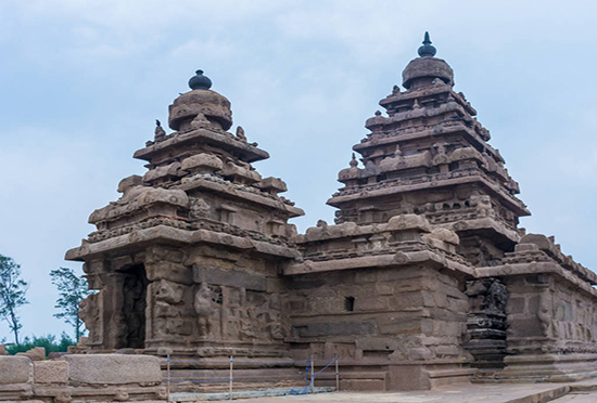 海岸神廟位于甘吉布勒姆沿海的汀線,最早由國王 Narasimha Varman一世建于7世紀后半期。 神廟最早期有七座,但經過長年海風、海浪的風化、侵蝕,其中六座已被海水慢慢蝕去。廟本身不大,但型態(tài)優(yōu)雅,代表了帕拉瓦藝術的最終杰作。神廟建材全為花岡石,是南印度最早的石造神廟代表,此時期的建筑風較為單純素雅。