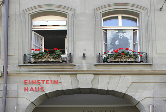 愛因斯坦故居坐落在伯爾尼老城區(qū)克拉姆街49號,距離著名的伯爾尼鐘樓僅200米。愛因斯坦和家人1903-1905年之間租住在這間小套房里,如今你可以在此一睹這位偉大的物理學(xué)家的風(fēng)采。公寓的一樓現(xiàn)已改建成咖啡廳和餐廳,上了樓梯轉(zhuǎn)個彎便是愛因斯坦的舊居。實際上套間很小,房內(nèi)被一扇門隔成兩個半間。小一點的后半間房里有一張書桌,是當(dāng)年愛因斯坦用過的原物。桌前的墻上貼有著名的質(zhì)能方程式:E=mc2。正是在1905年,愛因斯坦發(fā)表了包括關(guān)于狹義相對論在內(nèi)的四篇論文,在物理界具有劃時代的意義,因此1905年也被稱為“愛因斯坦奇跡年”。